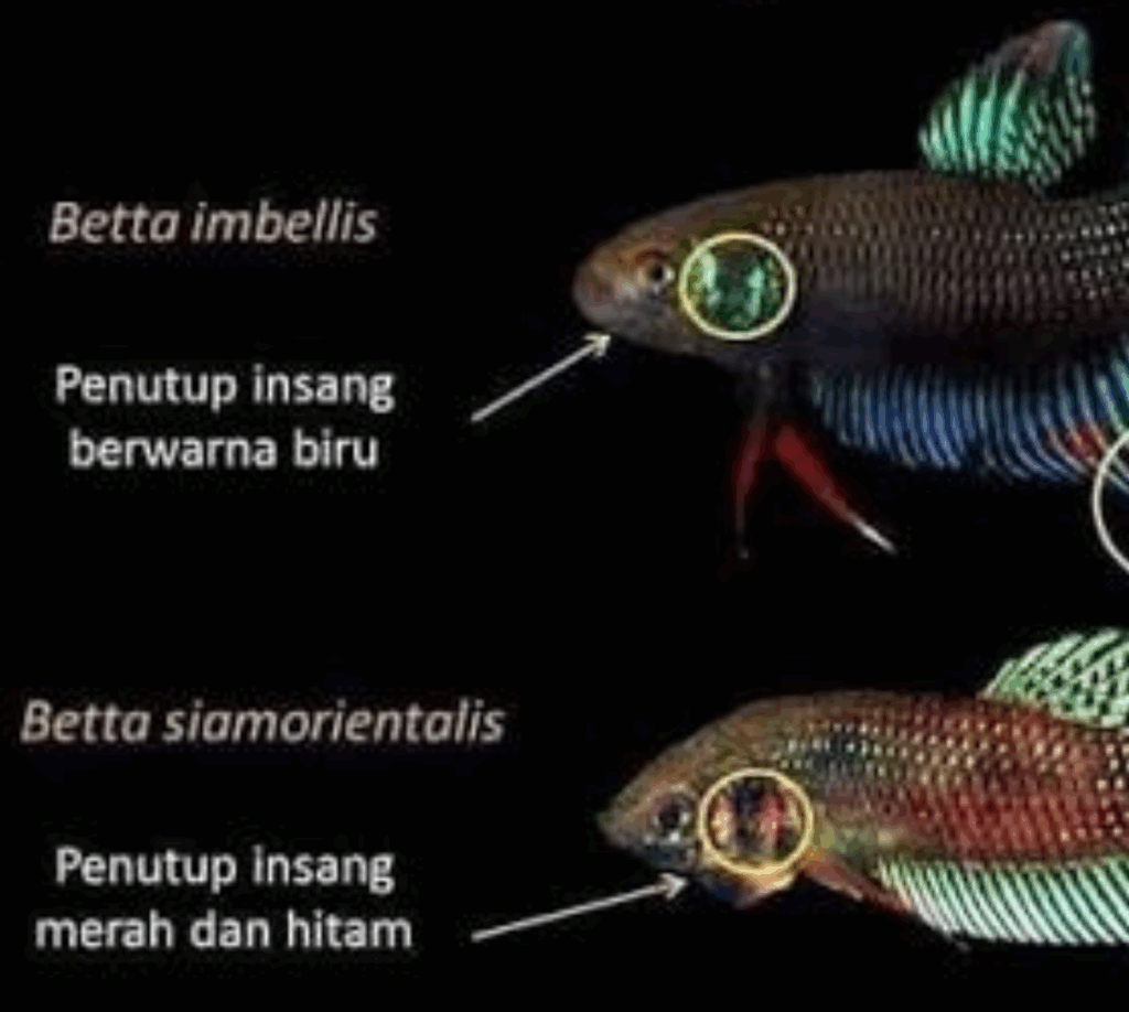 płetwa ogonowa pokryta jest czerwonym obrzeżem i cienką, czarną krawędzią. Od Betta imbellis najłatwiej odróżnić je po pokrywie skrzelowej. U siamorientalis obserwujemy czerwone paski lub ich brak.
